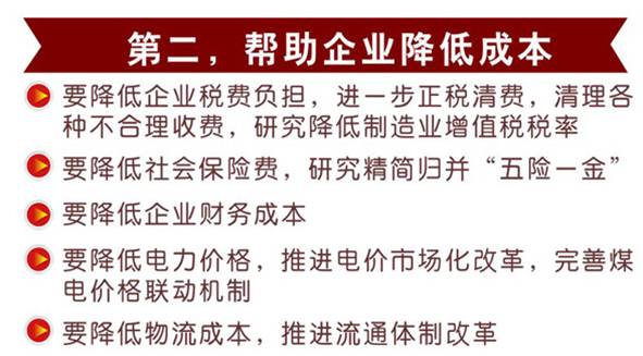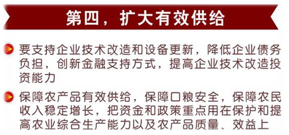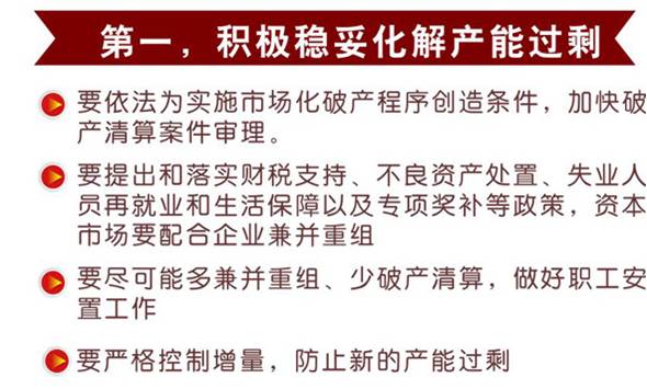 ◆ 看任务:解决产能过剩、去库存、去杠杆、降低企业成本、改善薄弱环节。