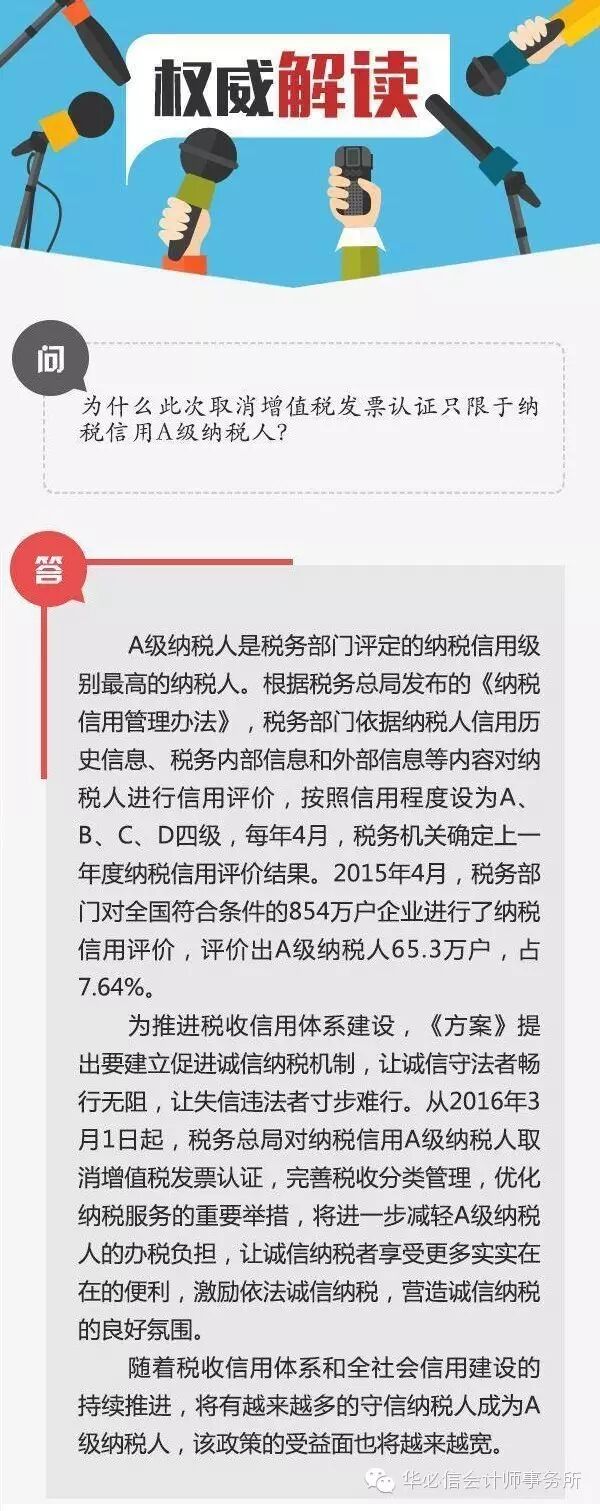 国家税务总局解答A级企业取消增值税认证的5个问题,公布7项便利办税措施!